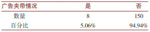 当短视频博主积累一定量的粉丝数时,巨大的流量便会引来广告商的青睐。根据前述的“二次传播”理论,一般来说,只有当视频的受众充分认可视频的内容时,才会对视频进行转发,转发量能够很好地反映用户对短视频的认可程度。表8呈现了158个生命科学类科普短视频的广告夹带情况。在158个短视频中,夹带广告的短视频仅占5.06%。科普短视频博主在自己的内容中夹带广告并非完全不可,但不可本末倒置,将科普视频当作盈利的工具。